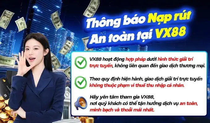 Trong quá trình nạp tiền, anh em chỉ cần chọn phương thức phù hợp, nhập số tiền mong muốn, xác nhận giao dịch và tiền sẽ tự động cập nhật vào tài khoản trong vòng vài giây đến vài phút. Đặc biệt, Vx88 xn thường xuyên có các chương trình khuyến mãi nạp lần đầu, giúp cộng điểm thưởng hoặc miễn phí cược để tăng khả năng thắng lớn.